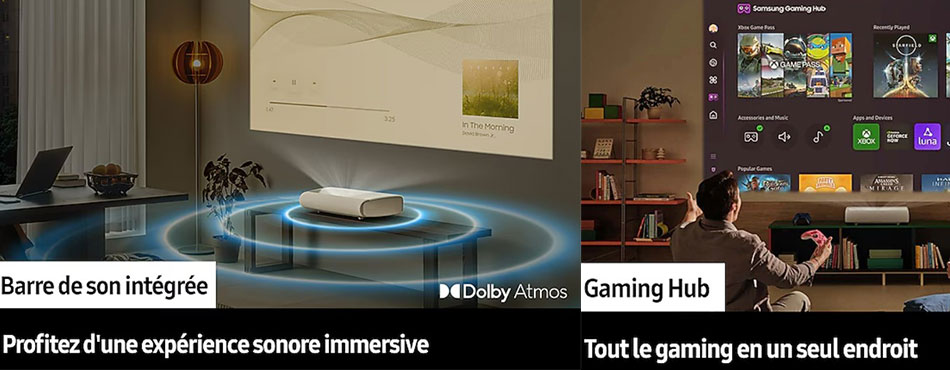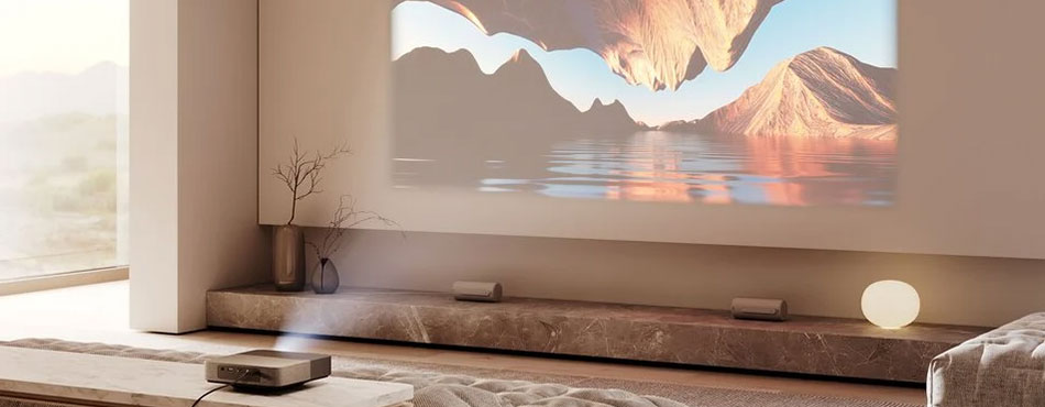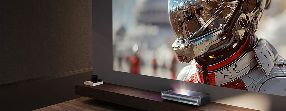 Si vous avez une petite pièce et que vous souhaitez minimiser les câbles et ne pas rajouter de barre de son, un vidéoprojecteur à courte focale est sans doute la meilleure option. Toutes ses fonctionnalités en feront un produit central avec un minimum d’encombrement.
