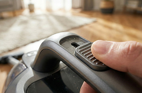 Avec le précédent modèle de Hoover, le HF910P, le bac à poussière servait aussi bien pour le mode aspirateur balai que pour le mode aspirateur à main. Et c'est d'ailleurs le cas pour la grande majorité des aspirateurs balais du marché. Dans le cas du HFX, le quatrième module à fixer au manche pour passer en mode aspirateur à main possède son propre bac à poussière. Mais ce n’est pas tout ! Il est bien sûr équipé de son propre filtre à particule également. L’avantage ? Les bacs à poussière se remplissent moins vite, car la charge est divisée par deux. De plus, les filtres s’encrassent également plus lentement, car ils sont moins sollicités. Ce qui fait moins de nettoyage pour vous ou de passages à la poubelle. Pratique !