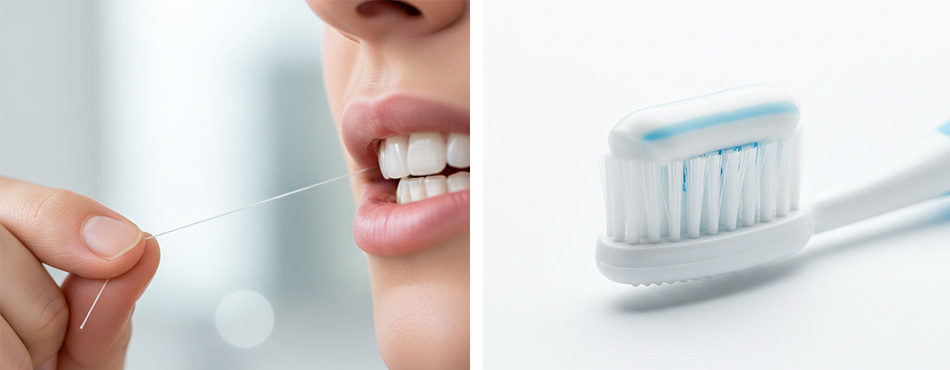 Le brossage seul ne nettoie que 60 % de la surface des dents. Les 40 % restants se trouvent dans les espaces interdentaires, là où la brosse ne passe pas. Il est donc nécessaire d'utiliser des accessoires dentaires tels que le fil dentaire.