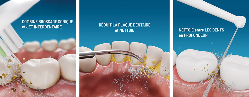 Le jet interdentaire nécessite un verre à disposition et il faut apprendre à dompter l'appareil pour ne pas mettre de l'eau partout.