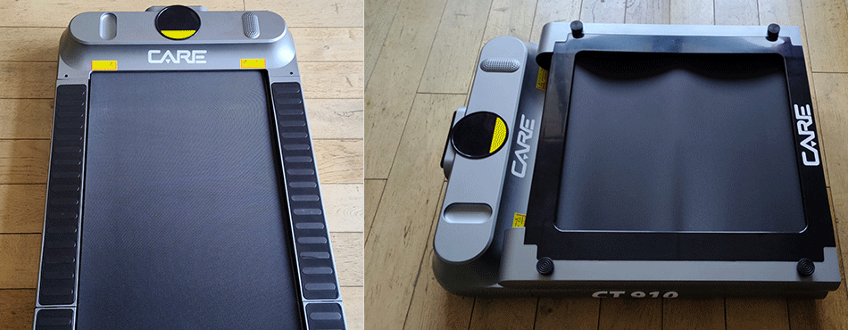 La marque Care Fitness a visiblement voulu proposer avec ce tapis de marche un produit peu encombrant, simple d’usage, facile à mettre en œuvre et sécurisé. Le moins que l'on puisse dire est que tous ces objectifs sont atteints. Nous ne reviendrons pas sur le côté peu encombrant pour cette catégorie de produit, cet aspect a déjà été évoqué plus haut. Pour le reste :