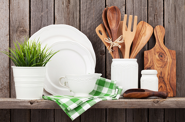 L'alliance du blanc et du bois est idéal pour décorer sa cuisine rustique avec élégance. On ne range pas les couverts en bois, les torchons ou la vaisselle. On les expose. En outre, on convie le Sud grâce aux plantes et aux herbes aromatiques... sans oublier la nappe à carreaux !