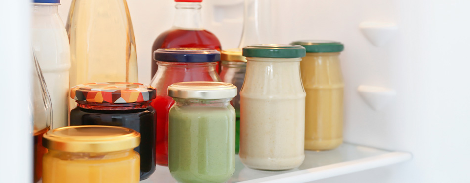 Pour les sauces et condiments qui se conservent au frigo, il est tout de même important de bien les disposer pour une conservation optimale. Malgré les idées reçues, la meilleure place n'est pas la porte du frigo, même si l’emplacement fait penser le contraire. Celle-ci est sujette à trop de variations de température, il est préférable de les placer dans les zones les plus froides : les étagères du bas !