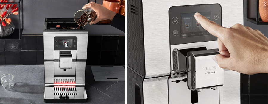 Krups a également pensé à varier les plaisirs. Pour ceux qui achètent leur grain déjà moulu, un emplacement spécifique permet de se passer du broyeur. De plus, un mode "café filtre" offre une fluidité digne des meilleures cafetières classiques, et ce pour 8 tasses maximum grâce à une fonction spéciale carafe. Quelques gestes seulement suffisent pour accéder à ce type de fonctions : l’écran tactile couleur fait office de sélecteur de boissons.