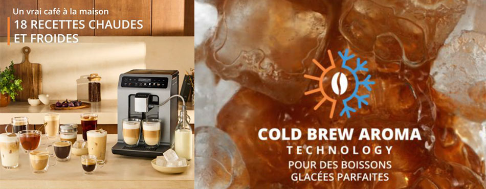Vous obtenez ainsi un café glacé aux arômes équilibrés, et ceci en seulement 1 minute ! Cette technologie surpasse de loin la simple coulée d'un espresso standard sur des glaçons (qui donne un goût amer) et est bien plus rapide qu'un Cold Brew traditionnel (qui nécessite quant à lui 12 heures de réfrigération). La technologie Evidence Hot & Cold vous assure plus de goût, plus rapidement !