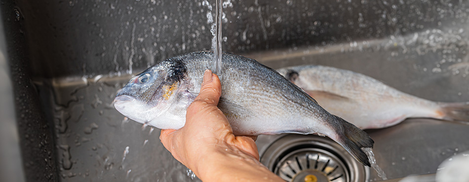 De même que pour les viandes, laver son poisson et ses fruits de mer peut disséminer des bactéries dans votre cuisine, avec à la clé de belles intoxications alimentaires ! Pour éviter tout risque, équipez-vous d’une thermosonde qui pourra vous informer quand la chair du poisson aura atteint 60 à 65 °C, température à laquelle les bactéries sont toutes éliminées.