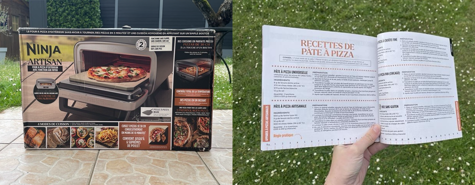 Le kit est donc complet. J'apprécie particulièrement l'intégration de la pelle à pizza, indispensable pour l'insertion et l'extraction, ainsi que les nombreuses fiches recettes intégrées, qui montrent bien l'étendue de ce que le four peut faire. Cela permet aussi de mieux comprendre comment l'utiliser.