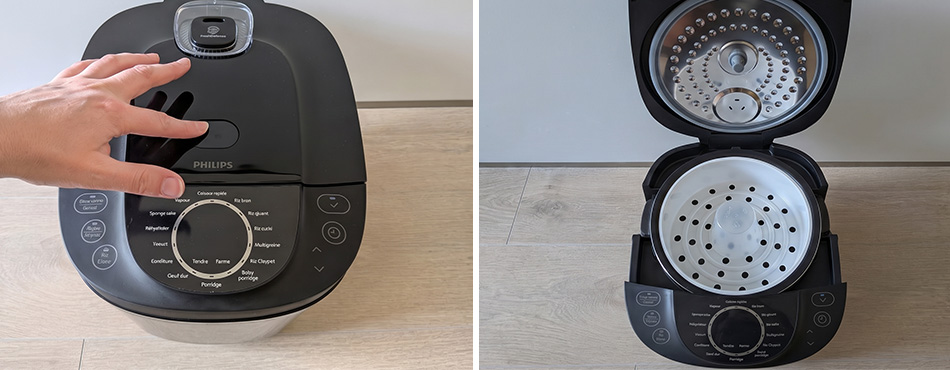 Ce cuiseur Philips est également équipé d'une valve de vapeur amovible équipée de la technologie FreshDefense (voir photo ci-dessous avec mon doigt pointé dessus).