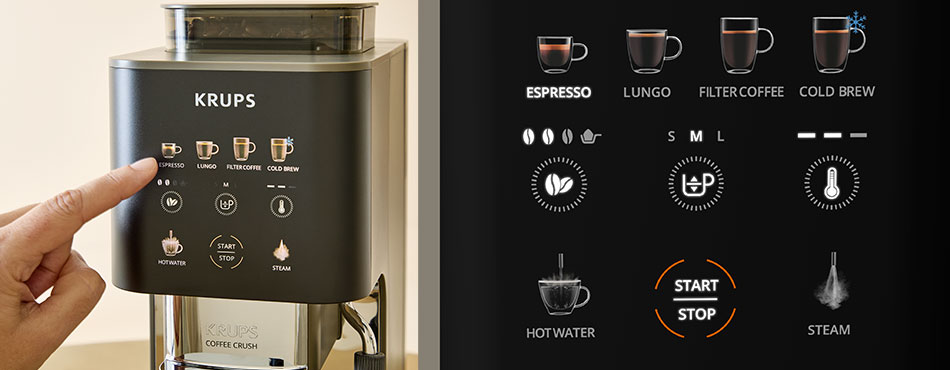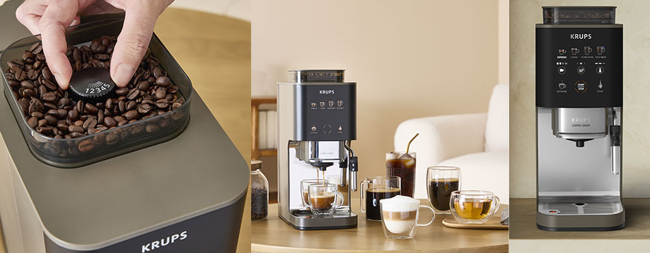 Le premier argument de cette machine à café à grain saute aux yeux : sa silhouette ! Avec seulement 15 cm de large, la Krups Coffee Crush est jusqu’à 50 % plus compacte qu'une machine automatique classique. Elle se glisse ainsi dans les plus petites cuisines ou les recoins de bureau sans aucun compromis sur la qualité.