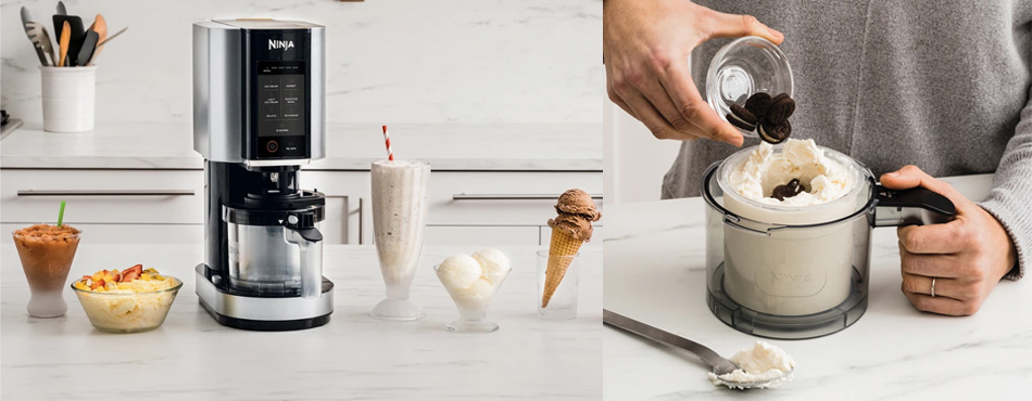 La sorbetière qu'il vous faut est sans aucun doute la Creami NC300EU de Ninja. Pour un prix record conseillé de 199,99 €, elle permet de préparer jusqu'à 1,4 litre de délicieuses glaces maison grâce à ses 6 programmes automatiques (crème glacée, crème glacée allégée, glace à l'italienne, smoothie, milkshake, sorbet, et ses 3 pots inclus.