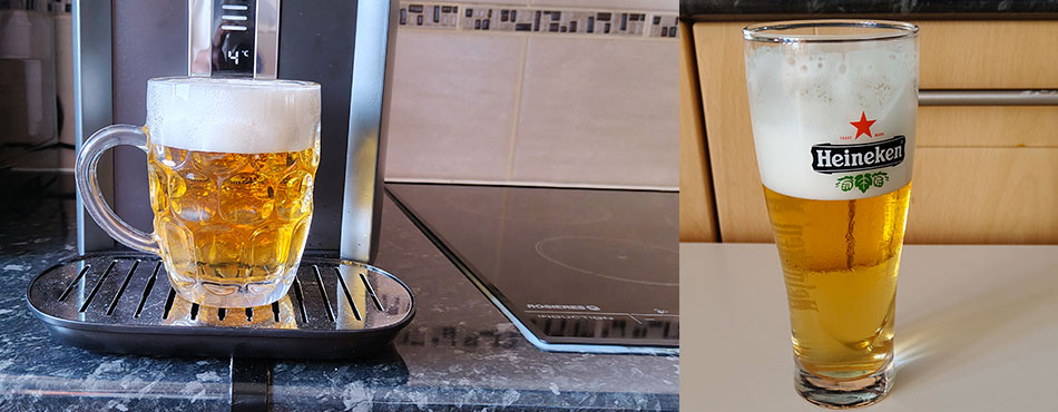 On peut aussi laisser le bec verseur tremper dans la bière pour limiter la quantité de mousse produite. Autre astuce qui marche bien, on peut mettre le verre au frais quelques minutes avant de l’utiliser. Il ne reste plus alors qu’à retirer l’excédent de mousse. Autre solution, laisser un peu couler la mousse dans le récepteur pour évacuer l’excèdent avant de mettre le verre.