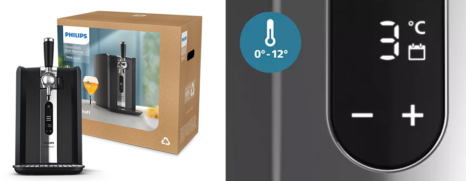 La marque Philips suggère de mettre directement le fût dans la tireuse. Vous choisissez alors la température cible et la machine se charge de rafraîchir le fût. Mais vous pouvez aussi au préalable le mettre au réfrigérateur si vous en avez la place (mais surtout jamais au congélateur !) pour accélérer le refroidissement du fût. Nous allons voir plus loin que cette solution a ses avantages.