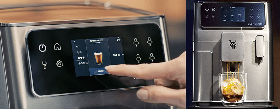 Elle est en effet capable de vous proposer pas moins de 9 façons de déguster votre café, depuis le classique expresso jusqu’au Doppio+ en passant par le Ristretto ou encore le café long. Mieux encore, la machine WMF propose aussi une fonction inédite dédiée au Nitro Café. Qu'est-ce-que c’est au juste ? Cette boisson, très à la mode, consiste en un café servi froid, sous pression et légèrement pétillant, un délice !