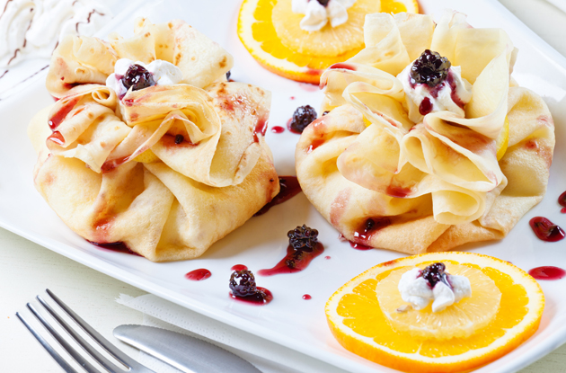C'est LA pochette surprise de la Chandeleur. Une fois vos crêpes préparées, c'est vous qui choisissez la garniture : sucrée ou salée, mais toujours généreuse. Placez-la au centre de la crêpe et refermez celle-ci en formant une petite bourse. Maintenez le tout à l'aide d'un cure-dents, d'une ficelle à rôti, de rafia, ou mieux, avec un lien comestible comme un brin de ciboulette, un bonbon en forme de fil, une lamelle d'écorce d'orange, etc.