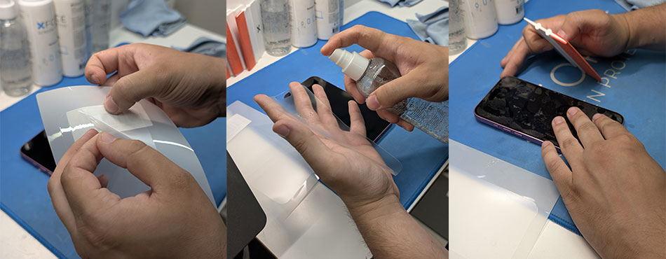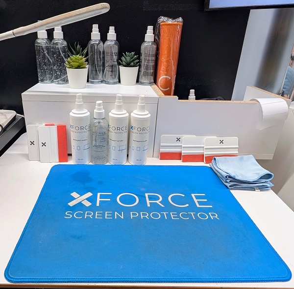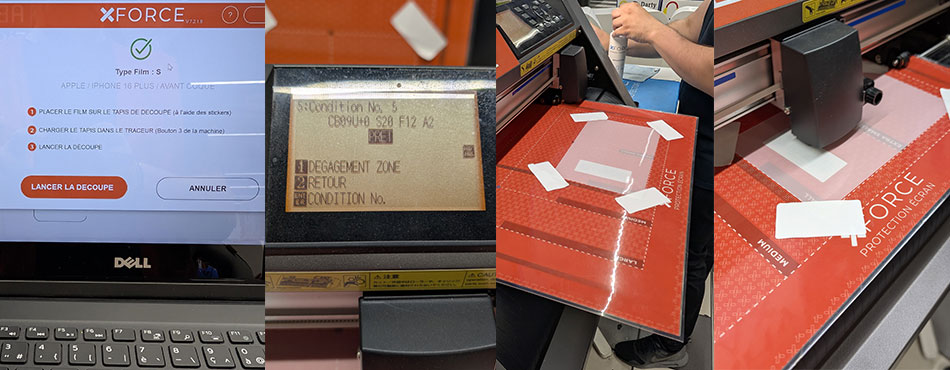 À l’aide d’un ordinateur dédié et d’une machine de découpe spécifique XForce, celui-ci va produire un film parfaitement adapté aux dimensions de votre smartphone, en tenant compte des capteurs, de la caméra et du haut-parleur.