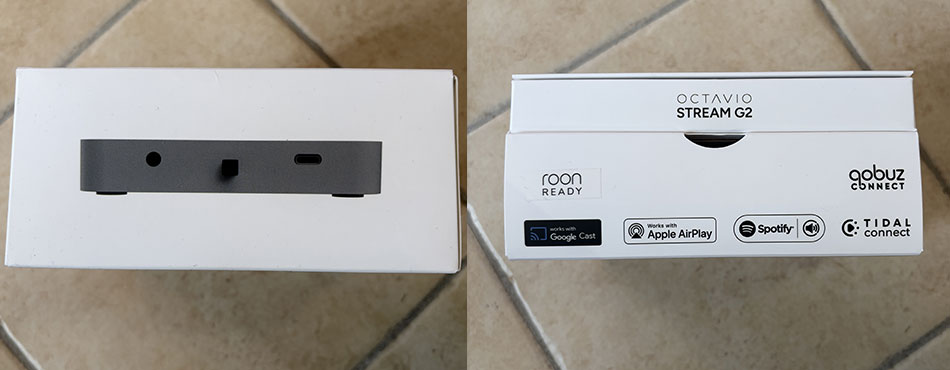 Le Stream G2 est livré dans une très belle boîte sur laquelle on retrouve toutes les informations sur le produit. Chose agréable, il y a une photo de l’appareil vu de dessus, et vu de l’arrière, laissant voir les différentes connectiques ainsi que le bouton marche/arrêt ; tout y est, et c'est très pratique. Toutes les informations nécessaires sont disponibles.