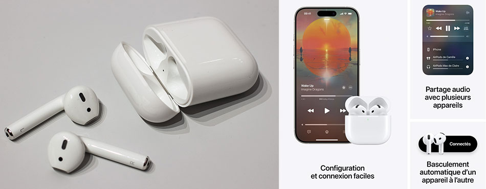 Pourquoi choisir les AirPods 4 ? Ils sont parfaits pour ceux qui veulent une expérience audio de qualité, une grande simplicité d’utilisation au quotidien tout en bénéficiant des dernières technologies Apple, le tout à prix d'attaque.