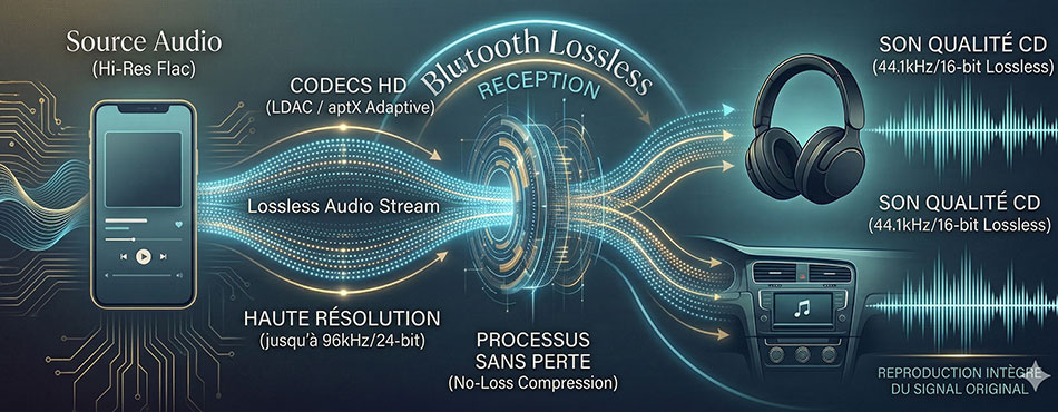 Pour les amateurs de haute fidélité, sachez que le Bluetooth, qui par le passé pouvait altérer le son, s'est beaucoup perfectionné. Des technologies comme l'aptX HD ou le LDAC, appelés "codecs", permettent désormais de diffuser un son "Lossless" (sans perte), rivalisant avec la qualité d'un CD ou d'un vinyle.