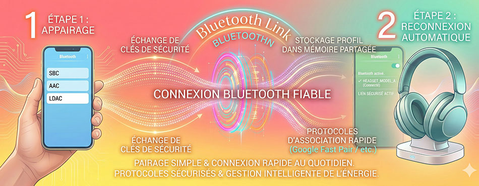 Cette "robustesse" de connexion permet désormais de circuler librement d'une pièce à l'autre sans craindre les micro-coupures ou les décrochages intempestifs. De plus, les protocoles récents comme le Multipoint autorisent la connexion simultanée à deux appareils, vous permettant de basculer instantanément de la musique sur votre tablette à un appel sur votre smartphone. C'est cette alliance entre portée étendue et intelligence de gestion qui fait du Bluetooth la solution de confort absolue au quotidien.