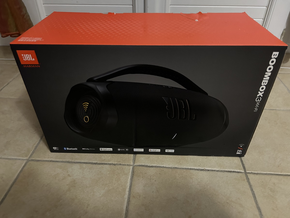 De même dimension que la très connue Boombox 3, cette version intègre le Wifi, afin de pouvoir fonctionner en multiroom. Elle possède la même qualité sonore que le modèle Bluetooth mais l’ajout du Wifi lui permet de bénéficier d’un son sans compression et du Dolby Atmos. Le tout, avec la même autonomie de 24H.
