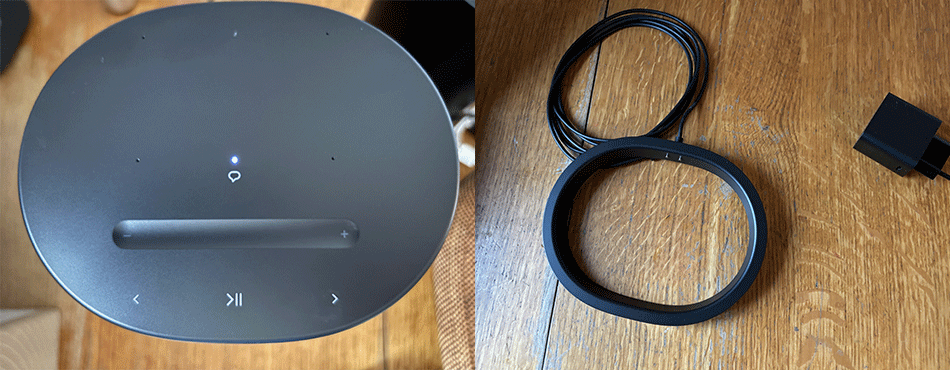 Son poids de 3 Kg laisse présager une qualité sonore au rendez-vous. L’interface physique a été revue, et elle arbore maintenant les mêmes commandes sensitives sur le dessus que les ERA 100 et ERA 300. Et comme ces 2 modèles, vous trouverez à l’arrière un petit bouton pour éteindre le micro.