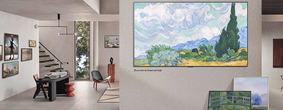 Ce 65 pouces (164 cm) est le joyau de la gamme de téléviseurs LG. Conçu pour une intégration parfaite, son design "Gallery" (One Wall) se fixe au mur sans aucun espace, tel un véritable tableau.