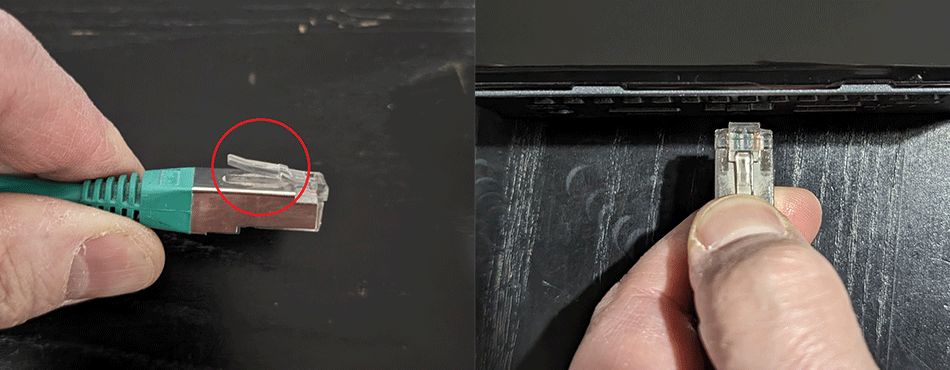 Notre conseil : appuyez sur le loquet puis retirez doucement le connecteur du port Ethernet.