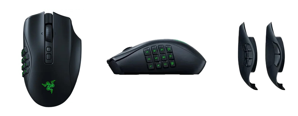La Razer NAG V2 PRO propose trois façades différentes de 2, 6 ou 12 boutons supplémentaires programmables, de quoi adapter l’utilisation à plusieurs types de jeux sans faire un investissement dans plusieurs souris.
