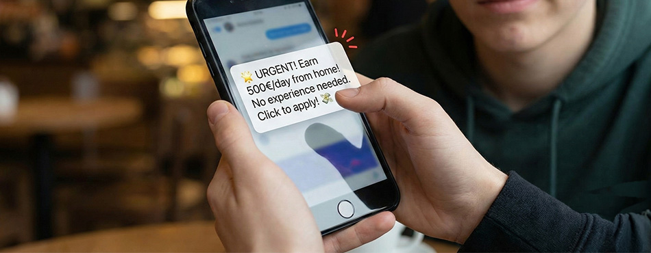 Les escrocs connaissent l'enthousiasme du début d'année, et en jouent : "Commencez 2026 du bon pied !", "Gagnez de l'argent dès cette semaine !". Ils exploitent ce moment où les candidats multiplient les candidatures et peuvent baisser leur vigilance.