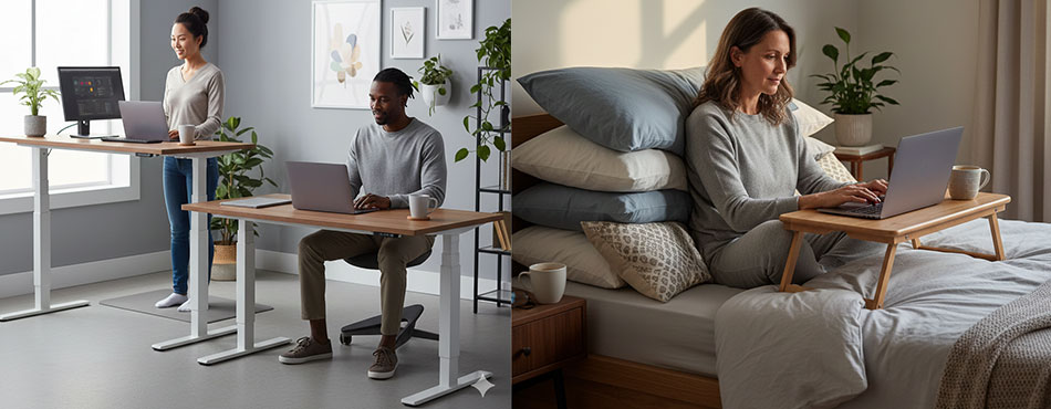 Ces accessoires permettent de transformer n'importe quel coin de canapé ou même votre lit en poste de travail ergonomique. Les supports pour ordinateurs portables surélèvent l'écran à hauteur des yeux pour éviter les douleurs cervicales.