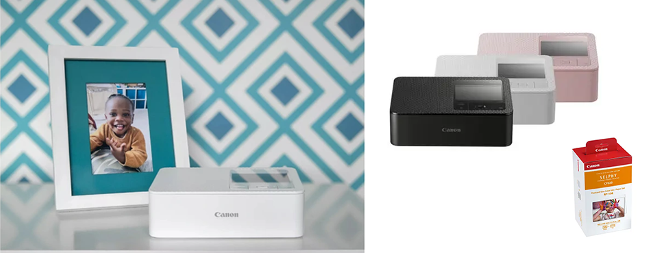 Ici, la Canon Selphy CP1500 est une imprimante compacte, qui utilise un pack papier et cartouche spécialement conçu pour elle.