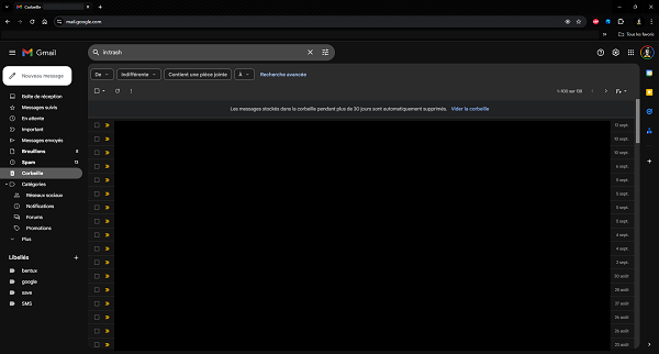 Pour libérer de l’espace, n’oubliez pas de vider votre corbeille, même si les messages supprimés sont automatiquement effacés au bout de 30 jours.