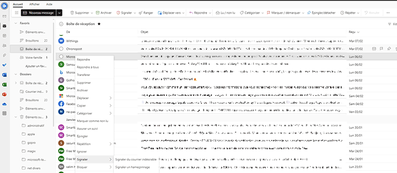 Le blocage des adresses e-mail dans Outlook s’effectue aussi simplement que dans Gmail. L’affichage peut varier d’une version Outlook à une autre (Outlook 365, Outlook ou version navigateur). Mais la procédure reste sensiblement la même.