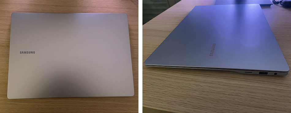 Avec un design minimaliste, mais élégant, Samsung nous propose le Galaxy Book 4 Edge, un ordinateur avec un nouveau coloris gris glacier, ultra fin et léger. À l'ouverture de la boîte, la première chose qui m'a surprise est le poids de l'ordinateur, soit 1,55 kg. Je l'ai très vite posé sur mon bureau par peur de l'abîmer ou de le faire tomber, n'étant pas habitué à avoir un PC aussi léger entre mes mains. Celui que j'ai eu la chance de tester est la version 16", et malgré sa taille qui est relativement grande, il est vraiment très léger !