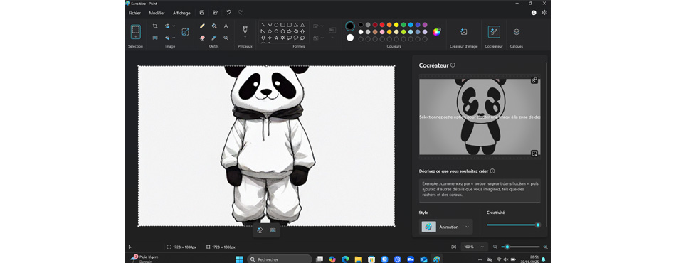 Une des fonctionnalités de l'IA que j'ai particulièrement appréciée est celle de Cocréateur sur Paint. Pour les créatifs et créatives, l'IA vous fera gagner énormément de temps, elle vous accompagne, vous permet de réaliser vos idées rapidement et vous les propose dans différents styles. Il faut juste écrire ce que l'on souhaite et faire un petit croquis, et on obtient un joli dessin instantanément !