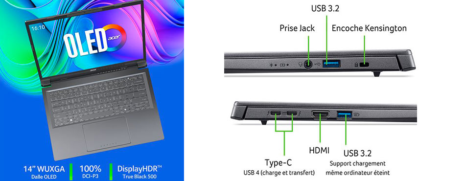 Avec son châssis beige élégant et son format 14", c'est l'outil ultime pour ceux qui exigent silence, endurance et prestige au quotidien. Le plus : son superbe écran OLED.