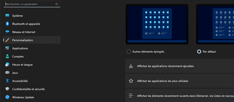 Dans le menu Démarrer, vous avez dorénavant la possibilité de créer des dossiers regroupant vos applications par thèmes. En effet, il est maintenant possible de changer la taille de la zone dédiée aux applications épinglées. En résumé, vous avez la possibilité de choisir un affichage du menu Démarrer avec plus ou moins de raccourcis et de recommandations.