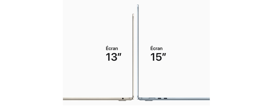 Le 1er MacBook Air est présenté en février 2008. C’est un ordinateur portable de 13’’ ultra léger. Aujourd’hui, le MacBook Air est équipé du processeur M4 et son écran est proposé en 2 diagonales : une de 13,6’’ et une autre de 15,3’’ pour un poids respectif de 1,24 kg et 1,51 kg.