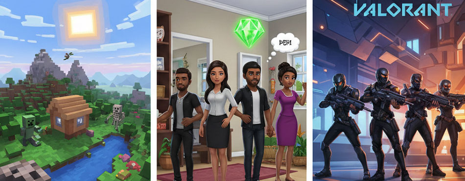Vos jeux : Fortnite, League of Legends, Roblox, Minecraft, Les Sims 4, Valorant.