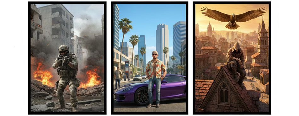 Vos jeux : Call of Duty, GTA V, Assassin’s Creed, Monster Hunter Wilds, EA FC 24 (FIFA).