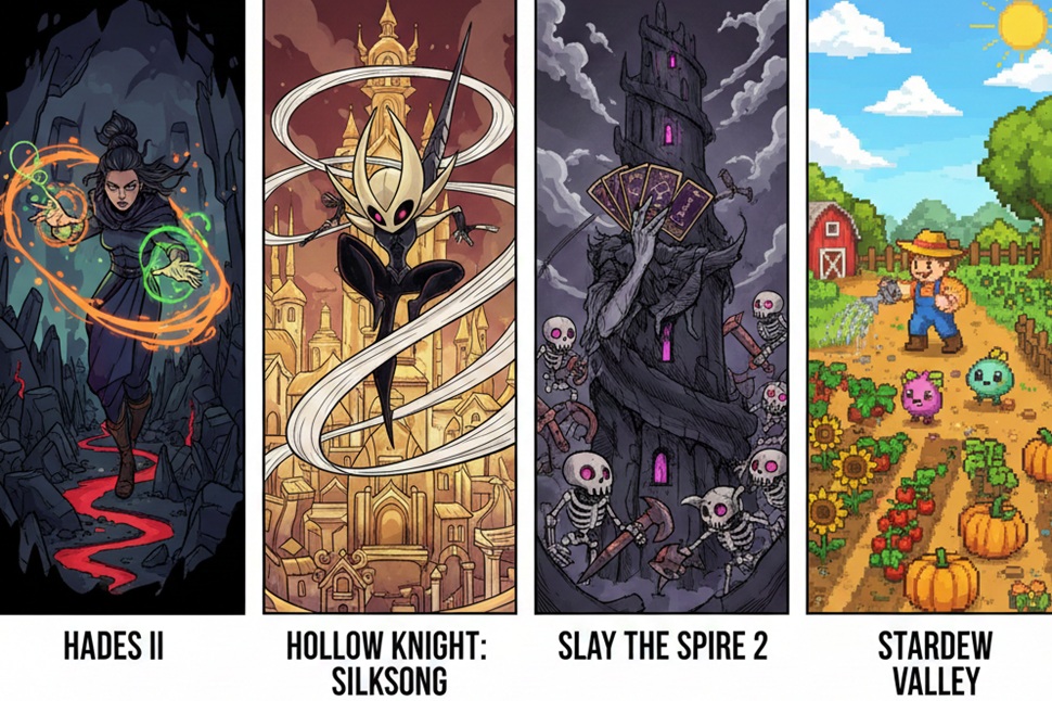 Vos jeux : Hades II, Hollow Knight: Silksong, Stardew Valley, Balatro.