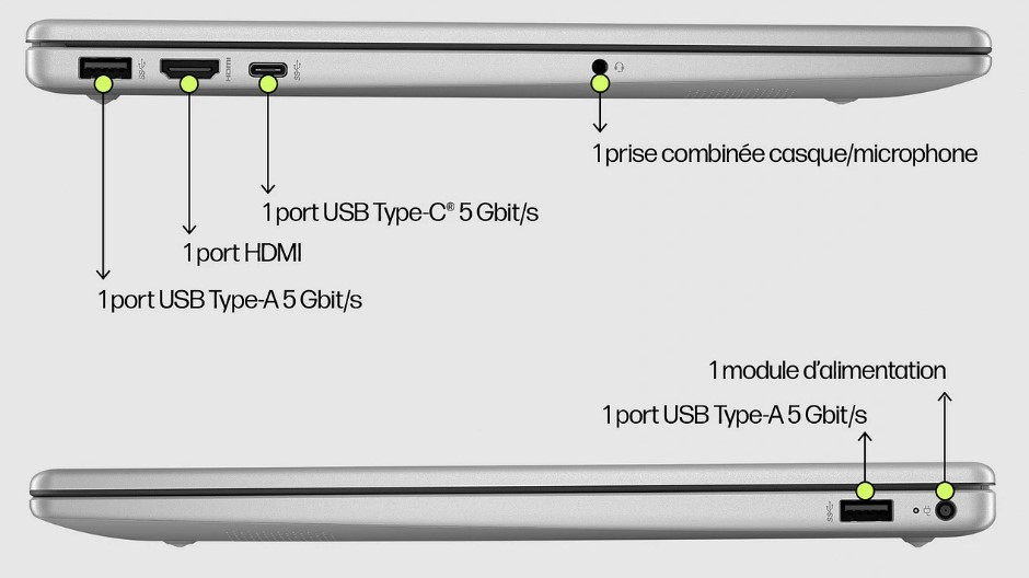 Si l’on y ajoute sa connectivité Wifi 6 (AX) + Bluetooth 5.2, on peut dire sans prendre de risque que cet ordinateur HP 15-fd1009nf est paré pour faire face à toutes les sollicitations.