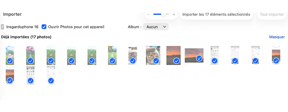 Astuce : vous pouvez choisir de supprimer automatiquement les photos de votre iPhone une fois le transfert terminé, pour libérer instantanément de l’espace.