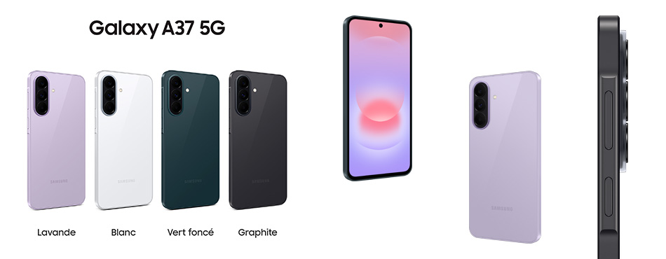 Les deux modèles sont proposés en version 128 ou 256 Go de stockage, avec 4 coloris différents : Graphite, Vert foncé, Blanc et Lavande pour le A37, Gris, Bleu, Bleu clair, Lavande pour le A57.