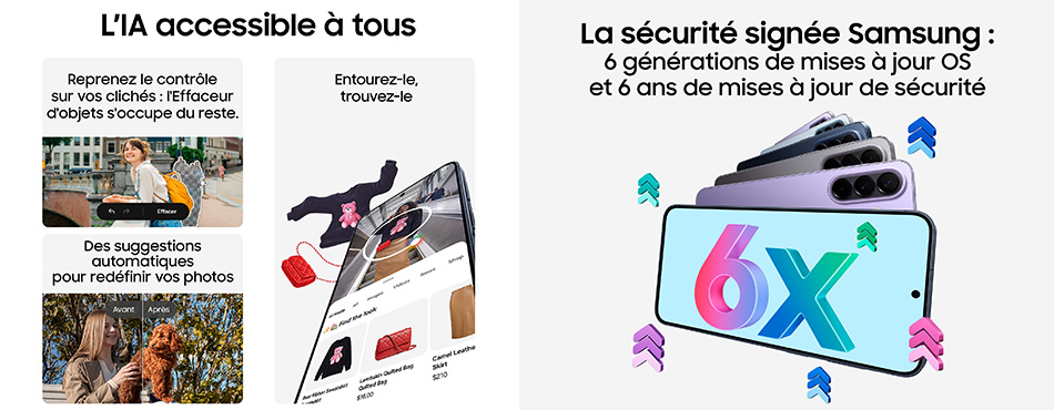 Au-delà de l'IA, la nouvelle gamme Galaxy A développe aussi sa durabilité. En garantissant 6 ans de support logiciel, la marque assure une longévité logicielle qui matche avec la robustesse physique des appareils (IP68). Cette approche limite ainsi le renouvellement précoce, un point clé du Baromètre du SAV Darty qui valorise la réparabilité et le suivi constructeur. Et n'oubliez pas que vous pouvez rapporter votre ancien appareil en magasin pour un recyclage optimal.