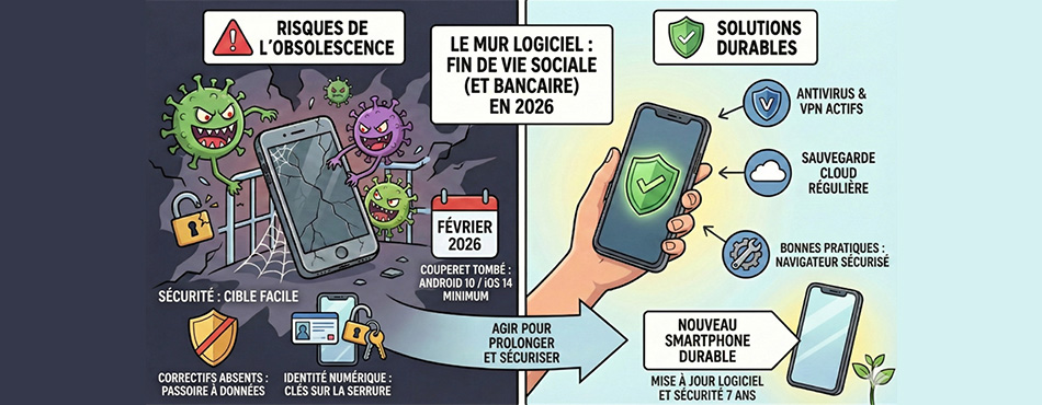 Mais obsolescence logicielle entraîne aussi un risque de sécurité, faisant de votre téléphone une cible facile pour les hackers. Car avec l'essor de France Identité et la dématérialisation totale des papiers (permis, carte d'identité), notre smartphone contient littéralement toute notre vie. Utiliser un appareil qui ne reçoit plus de correctifs de sécurité mensuels, c'est comme laisser les clés sur la porte de chez soi avec un panneau "Entrez, c'est ouvert". En 2026, un smartphone non mis à jour est une passoire à données personnelles.