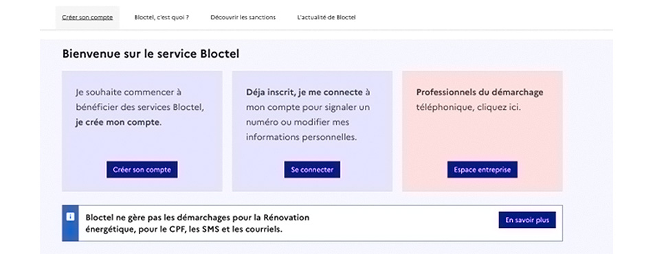 Inscrivez-vous sur les listes d’opposition au démarchage téléphonique, comme Bloctel. Bloctel est un service gratuit d’opposition téléphonique mis en place par l’État. Cela permet de réduire considérablement le nombre d’appels indésirables, sur votre téléphone portable ou votre téléphone fixe. Mais Bloctel ne bloque pas les SMS indésirables : il ne s’occupe que des appels.