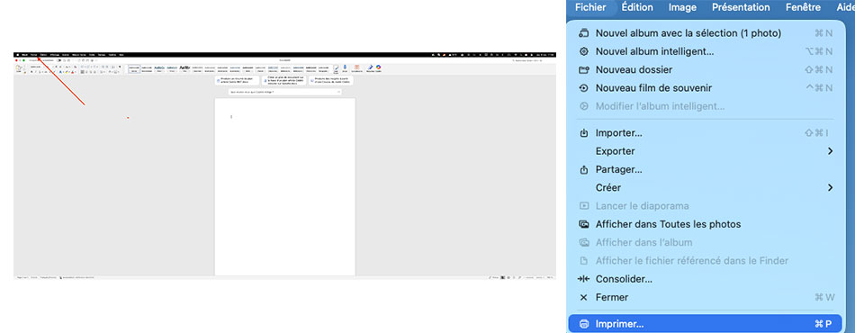 2- Ouvrez le document (photo, texte, pages internet ou tout autre document) à imprimer : Lancez l’application concernée (Photos, Mail, Safari, Pages…) ;