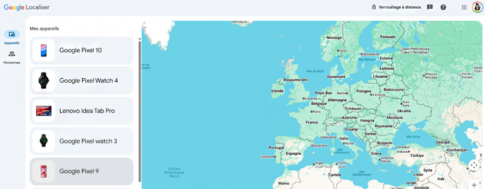 Cette méthode fonctionne si l'appareil est allumé, connecté à internet et lié à un compte Google.