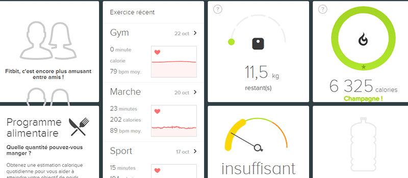 N’étant pas sportif, je n’ai malheureusement pas utilisé les outils Fitbit pour le sport. Mais ils sont nombreux et intuitifs. On peut choisir un type d’exercice parmi 41 disciplines sportives qui vont des arts martiaux au Yoga en passant par le CrossFit, le kayak, la natation ou le snowboard, avec la possibilité de définir un objectif de distance, de temps ou de calories brûlées. Il est également possible de paramétrer le positionnement des statistiques affichées sur le cadran. En fin d’exercice, un récapitulatif vous donne toutes les informations nécessaires au bon suivi de votre entraînement. Finalement, l’application Fitbit est on ne peut plus complète, même sans l’abonnement au service premium qui est disponible. Il suffit juste d’avoir un compte Fitbit, qui vous donne accès à toutes vos informations de santé et de vos exercices sportifs.